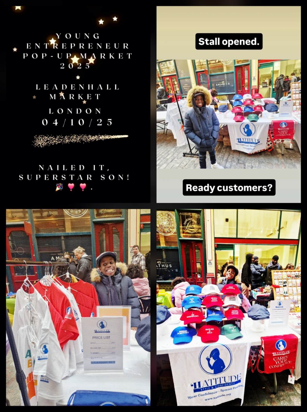 Bjorn took part in the Young Entrepreneur Pop-Up Market at the iconic Leadenhall Market in London, organised by Ultra Education. Since launching HATITUDE UK in mid-May this year, Bjorn has been busy designing and developing a range of uplifting headwear, T-shirts, and accessories that promote self-belief and positive thinking.